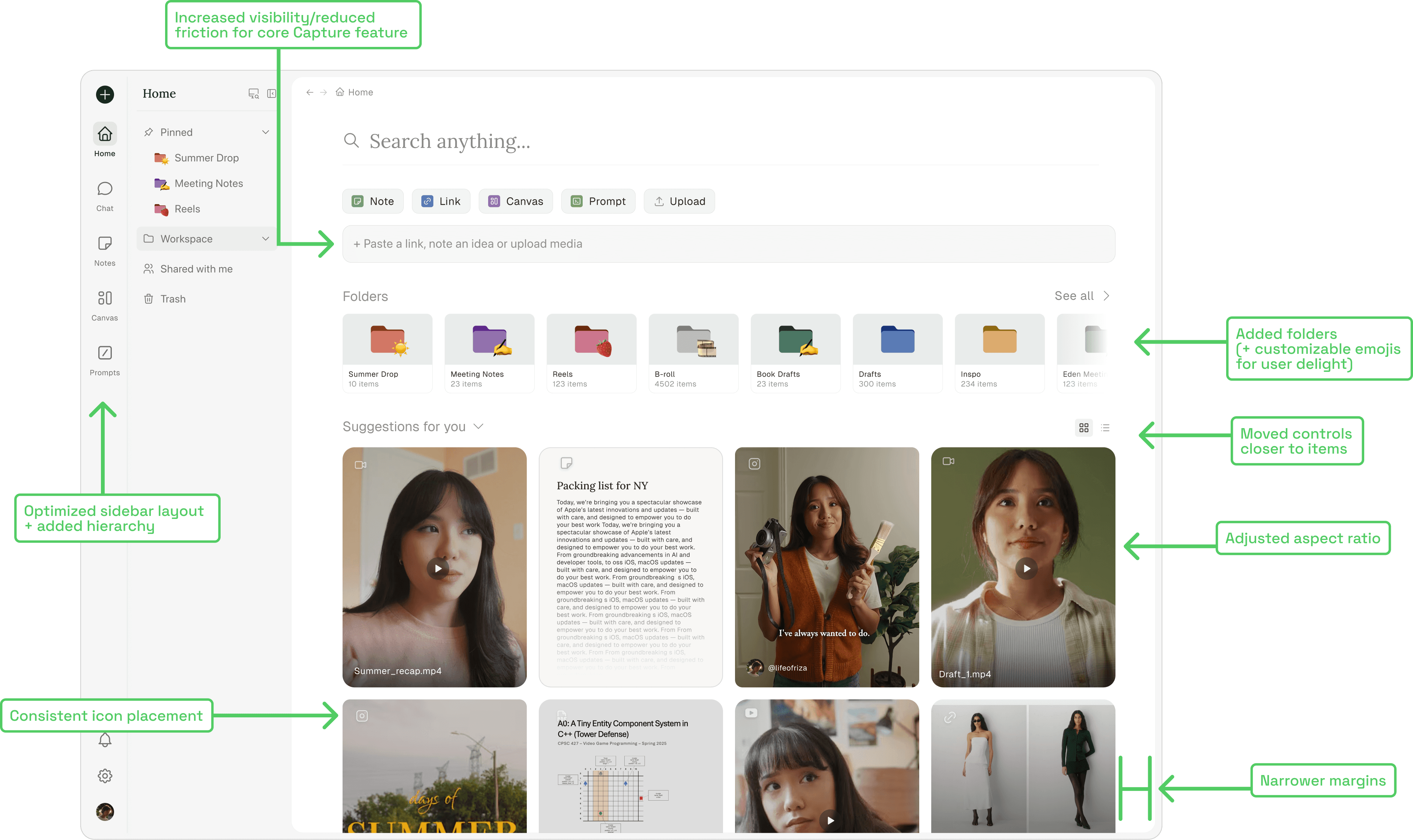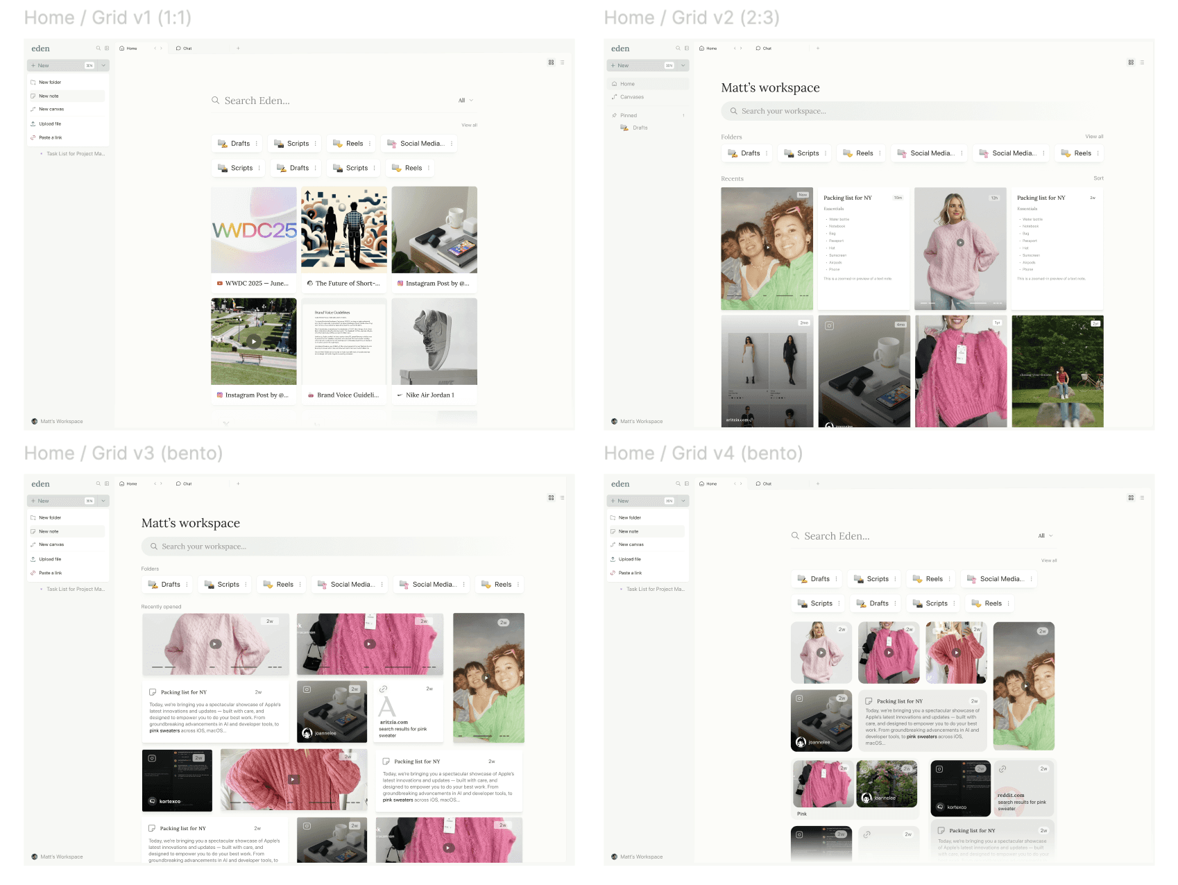 explored ways to make the layout more visual, prioritizing users' uploaded content and maintaining folder hierarchy and organization